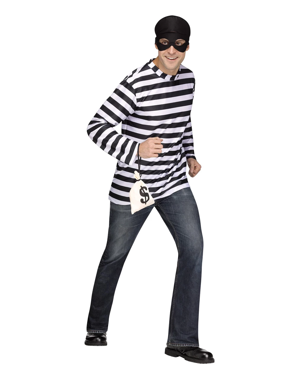 Als waschechter Bankräuber ist dir kein Coup zu heiß. Bankraub gehören ebenso zu deinen Hobbys wie riskante Verfolgungsjagden mit der Polizei. Kaum hast du ein paar Juwelen erbeutet, suchst du schon das nächste Abenteuer, bei dem du ordentlich abkassieren kannst. Im Bankräuber Kostüm für Herren verkörperst du einen zwielichtigen Gauner, der fette Beute macht. Das Langarm Streifen-Shirt für Bankräuber Kostüme & Panzerknacker Verkleidungen lässt sich mit coolen Accessoires erweitern.
