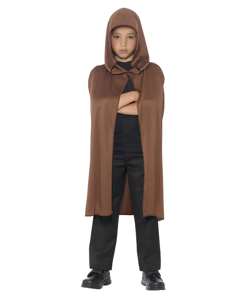 Der Kapuzenumhang für Kinder braun ist vielfältig für verschiedene Kinderkostüme einsetzbar und da Kinder es nun einmal lieben sich öfters und dann unterschiedlich zu verkleiden, ist dieses Cape eine günstige Lösung für mehrere Gelegenheiten. Das Cape passt sowohl für Mädchen, die sich als mittelalterlich Magd oder Elbin verkleiden und auch für Jungs, die den Hobbits oder einem jungen Jedi-Ritter nacheifern.