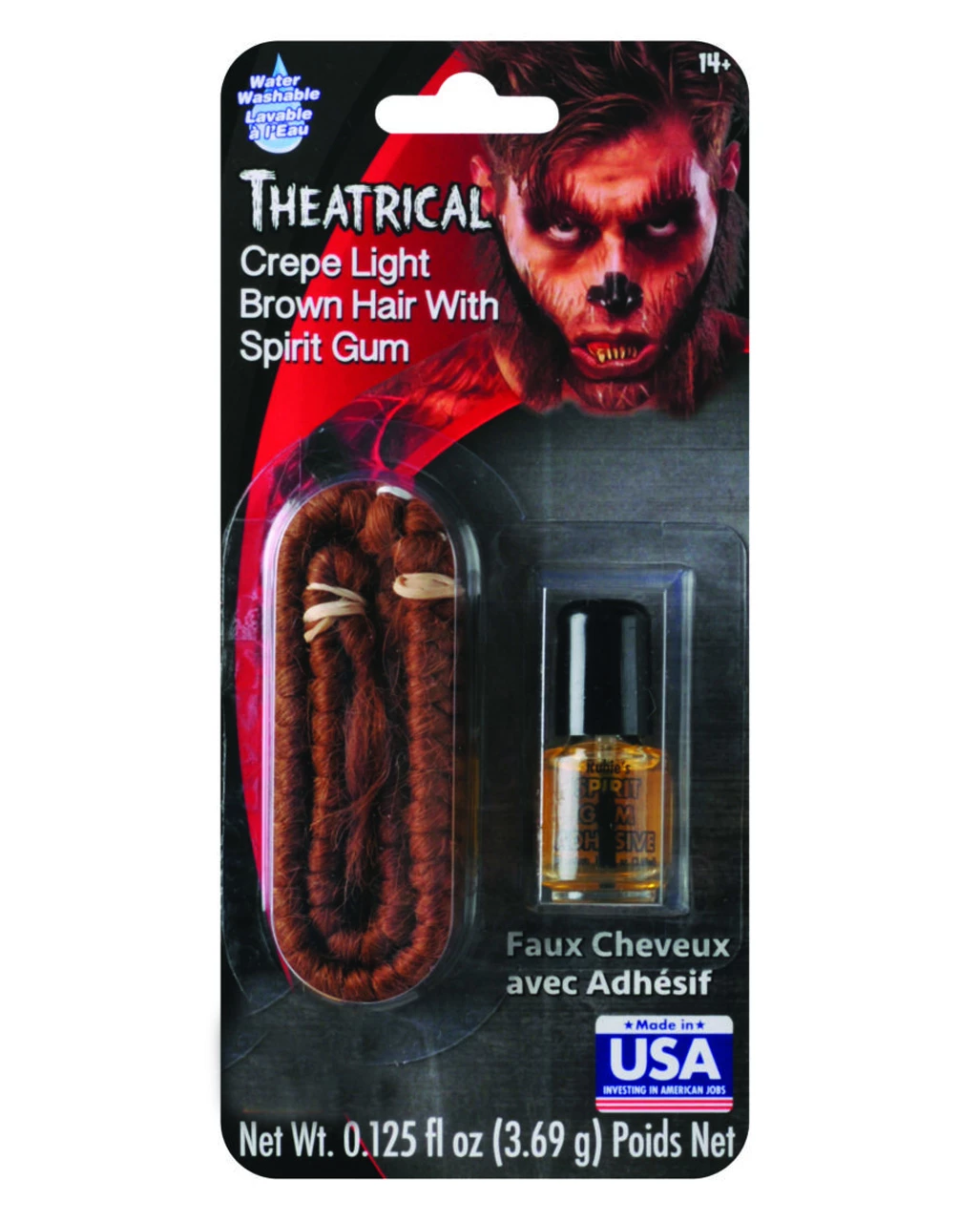 Hellbraune Theater Haare mit Hautkleber zum Kreieren von Bärten, falschem Brusthaar oder zum Perfektionieren deines Halloween & Faschings Make-ups. Ganz gleich, ob du damit eine Behaarung für einen Werwolf, ein Monster oder Brusthaar gestalten willst, das gekräuselte Kunsthaar hilft dir dabei deinen Charakter zu perfektionieren.